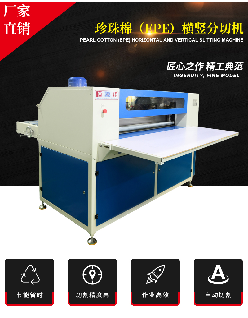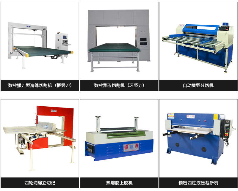 东莞恒翔机械主营:珍珠棉深加工设备如:全自动珍珠棉切割机,珍珠棉横竖分切机,四柱液压裁断机,珍珠棉压棉机,珍珠棉开槽机,热熔胶机,无胶粘合机,点胶机等包装机械。