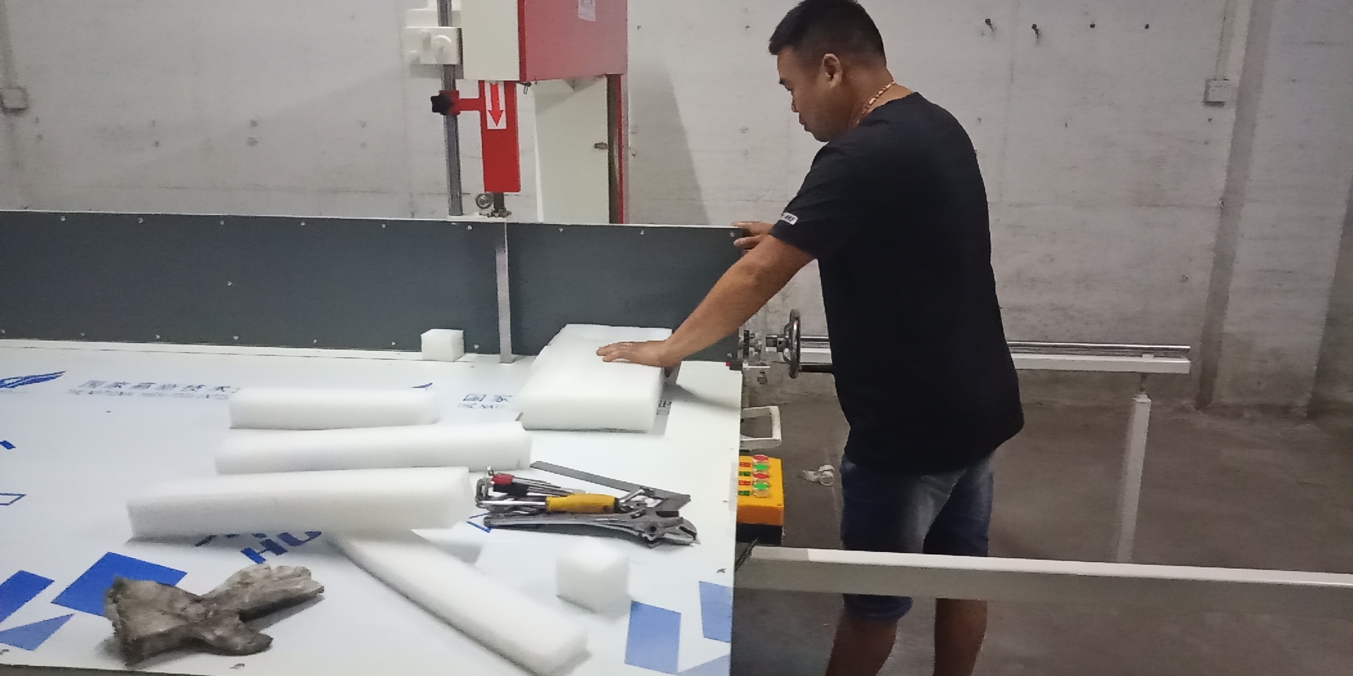 用于珍珠棉板材和卷料的横竖切割,是珍珠棉切割的理想设备,安全系数高、速度快、精度高。